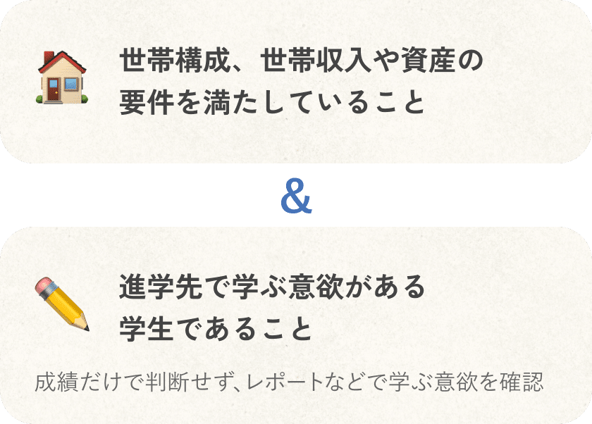 以下の要件を満たす学生全員が支援を受けられます。